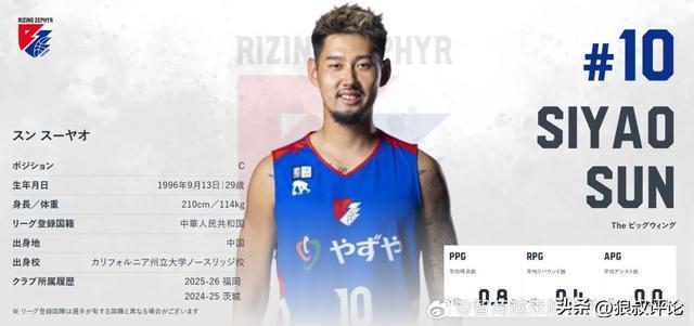 另外一个前CBA榜眼孙思尧上个赛季未能获得茨城机器人续约后,他选择加盟B2福冈新锐,身处更低一个级别的联赛,他同样未能获得太多的机会。涉及到孙思尧的发展而言,他比区俊炫更加难以看到发展前景。