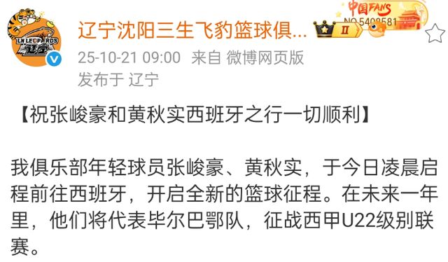 由于被禁赛三年,张峻豪和黄秋实的去向一直被球迷关注,之前传闻很多,但最终辽宁男篮还是帮助他们联系到了西班牙毕尔巴鄂竞技男篮,由于加盟西班牙球队必须要澄清信,所以两位年轻人也算是正式离开辽宁男篮。对于两个年轻人,辽宁男篮还是提供了很多帮助,包括提前学习外语,个人生活的自理能力等。辽宁男篮将会根据两个人在未来一个赛季的表现,再制定随后的计划。