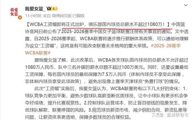 不过,随着新规的出炉,四川女篮这种大肆招兵买马的模式,已经彻底被断绝了。根据知情人士透露,WCBA联赛新赛季也将出台工资帽,根据规定,WCBA球队本土球员总薪资不能超过1080元,而外援总薪水不能超过100万美元。另外,为了照顾年轻球员,避免年轻球员因为薪水过低而放弃职业联赛,这一次他们还出台了最低薪水,最低不能低于7.5万元。很显然,这一次新规是完全针对于四川队这种超级豪门球队。要知道,目前四川队阵容中,李梦的年薪达到500万,韩旭也有400万,王思雨则是280万。换句话说,单单这三人的薪水,就已经超过了WCBA新赛季规定的球队总薪水了。更何况球队还有田媛媛、唐子婷、贾赛琪、高颂等实力派球员,他们的薪水也不低。如果按照这个新规,四川队恐怕真的要被瓦解了。
