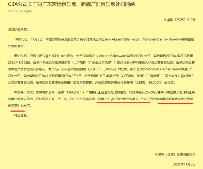 吉伦沃特的处罚结果早在10月13日就公之于众了,而随着11月5日对哈雷尔的处罚结果也正式公布出来,那么也就意味着,中国篮协层面对吉伦沃特和哈雷尔的处罚已经结束。而正当有一部分网友觉得对吉伦沃特和哈雷尔的处罚不疼不痒时,CBA也在中国篮协处罚之后,及时进行了追加处罚,官方公告也已经出炉了。