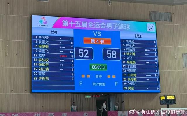 浙江队本场首发阵容由程帅澎、陆文博、余嘉豪、王奕博、朱俊龙组成。上半场余嘉豪中距离命中首获两分,上海队手感一般,浙江队趁机拉开比分,虽然外线三分未开,但在前场篮板拼抢上队员们有着良好的表现。下半场余嘉豪出现体能问题,上海队中锋闫鹏飞连续得分,三节战罢双方战至41:41。第四节浙江队增加了更多进攻手段,在吴前的率领下,对对手进行了轮番冲击,程帅澎借挡拆之后突破得手,陆文博、程帅澎均有得分,打出一波11:2,打乱了上海队的节奏,最终取胜获得半决赛名额。本场比赛,浙江队程帅澎拿到19分6个篮板3次助攻3次抢断,王奕博得到14分,两分球命中率80%。余嘉豪几乎打满全场,砍下9分11篮板。