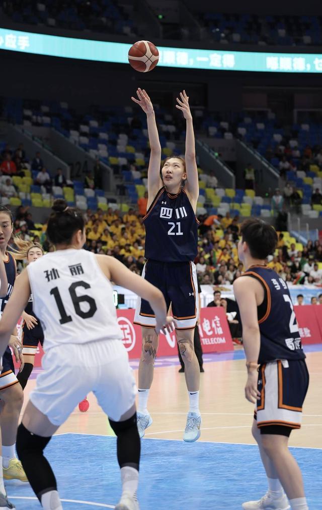 王思雨在比赛中因此,本次全运会两队的交锋,对于四川女篮而言,无疑是一场 “复仇之战”。谈到明天的对手,四川队主教练迪萨尔·弗雷德里克表示,“广东队是很强的队伍,也是上赛季WCBA冠军,明天也是一场硬战,会全力以赴。今天的半决赛的胜利证明了我们是一个团队,对于决赛,我们会内外线都争取做到最好。”