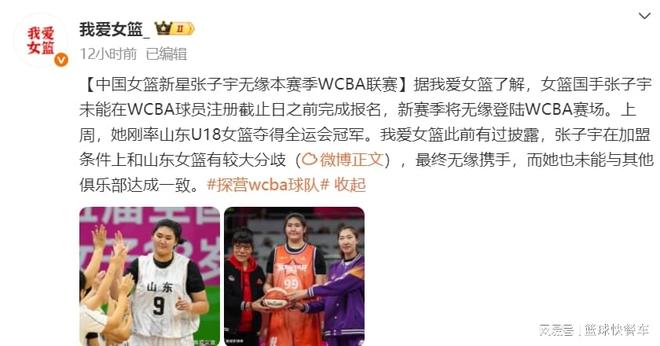众所周知,最近几年,WCBA女篮联赛因为巨头抱团模式,球队与球队之间的竞争力已经大打折扣。作为女篮第一中锋,李月汝早在两年前就看到了这一问题,并且毫不犹豫的选择离开,前往欧美联赛效力。相比之下,韩旭等人觉醒的比较晚。在过去几个赛季,四川队虽然所向披靡,不过,韩旭、李梦、王思雨等国手状态下滑也是不争的事情。尤其是韩旭,最近两年进步都在原地踏步。这不,在这一次全运会结束以后,韩旭已经做出一个惊人的决定,下赛季她将不留在WCBA联赛效力,她将前往澳洲联赛效力,试图再次冲击WNBA。而韩旭的离开,也导致WCBA联赛内线匮乏。原本张子宇的横空出世,可以很好的弥补这一短板。可现如今,张子宇这边也出现问题了。根据知情人士透露,2米28的张子宇由于在球员注册截止日尚未完成注册,已经确定无缘WCBA新赛季。就在前几天,张子宇还曾代表山东队出战全运会,并且帮助山东队拿到U18女篮冠军。不过,在结束全运会以后,张子宇与山东队再次进行谈判。据悉,针对张子宇登陆WCBA联赛一事,双方之间存在较大分歧,由于双方的分歧始终未能达成一致,这也导致张子宇错过了球员注册截止日注册。另外,除了山东队之外,像四川队等其他俱乐部,他们也曾追求过张子宇,但均无功而返。很显然,张子宇一旦无缘WCBA联赛,对于张子宇和女篮的打击是非常大的。毕竟,作为女篮最强新人,张子宇的实力是有目共睹的。在过去两个赛季,已经有不少人呼吁让她提前进入职业联赛。可由于未满18岁缘故,张子宇始终未能征战WCBA联赛。可终于熬到18岁了,却又因为双方未能谈拢,直接导致张子宇无缘新赛季,这确实有点让人惋惜。无论是山东队,还是张子宇,都是输家的一方。当然,按照张子宇目前的状态,一旦无法征战WCBA联赛,那么,和李月汝、韩旭一样,前往海外联赛征战的可能性就非常大。毕竟,张子宇的实力是有目共睹的,在过去两年,已经有不少海外球队对她产生浓厚兴趣。一旦张子宇前往海外联赛效力,那么,女篮三大中锋将彻底无缘WCBA新赛季。这对于女篮联赛而言,确实是一个巨大的打击。不过,对于中国女篮而言,却是一大利好,宫鲁鸣应该是赚翻了。