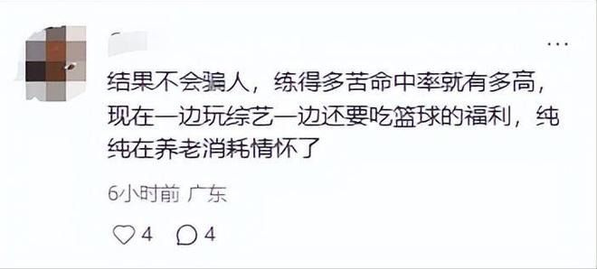 评论区里满是阴阳怪气的吐槽:“这投射水平也太差了吧?职业后卫做成这样。”“直接退役吧,都没我准。”“现在一边玩综艺一边还要吃篮球的福利,纯纯在养老消耗情怀了。”就在争议愈演愈烈时,央视体育的报道为这场风波画上了句号。