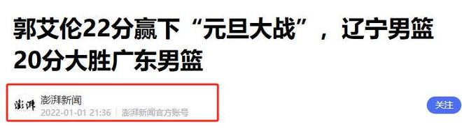 部分参考资料:央视体育|【#郭艾伦说唯一念想就是多打球#】2025澎湃新闻|郭艾伦22分赢下“元旦大战”,辽宁男篮20分大胜广东男篮.2022中国新闻网|郭艾伦发声:这口气咽不下去.2025