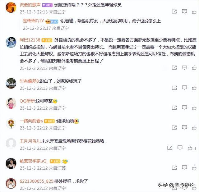 有球迷点评说道:“想问问俱乐部管理层,人家山西、广厦、稠州和江苏的小外援是怎么找的?虽然不能一场论,但是看着真闹心啊,真的不想花点钱吗?没有夺冠的压力不等于没有成绩的追求,长点心吧!”走了个水雷,又来了个水朗,这球打的太扎心了。抓紧找小外,别说一场比赛看不出什么,真正适应的,一场就看的出来了。外援验货的机会不多了,不是说一定要各方面都无敌但至少要有特点,比如擅长组织或投射,布朗目前来看不具备突出特长。 而且新赛季辽宁一定需要一个大包大揽型的双能卫去消化大量球权。威尔斯这场打的也很不好但考虑到上赛季表现还是可以信任,布朗的试错机会不多了,制服组对新外援考察要提上日程了。