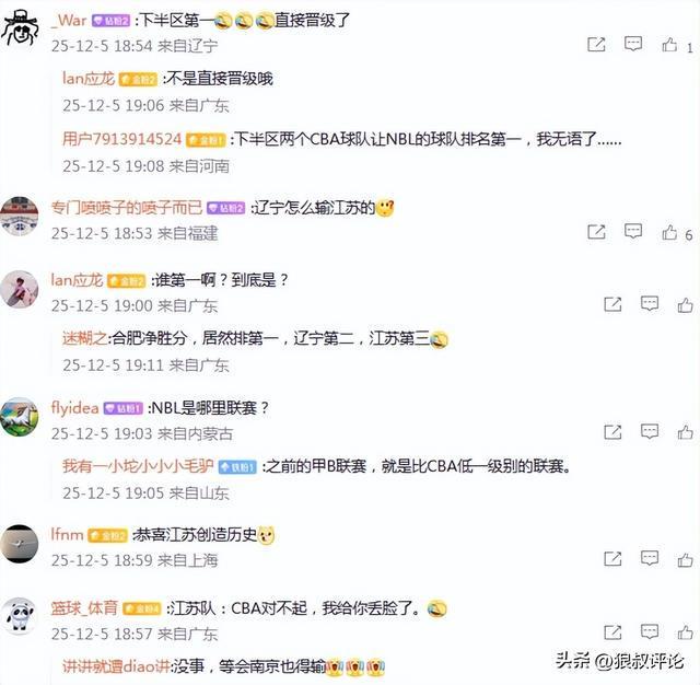 有球迷点评说道:“合肥净胜分,居然排第一,辽宁第二,江苏第三”。肯帝亚属实有问题,主教练得担责。下半区两个CBA球队让NBL的球队排名第一,我无语了。