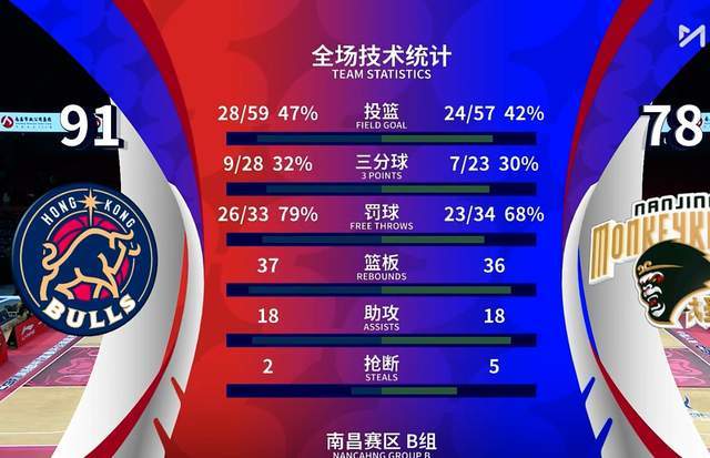 然而,到了第三节,南京同曦就崩了,完全找不到了进攻节奏,单节被香港金牛打成21-16,直接填平了上半场的坑。到了第四节,南京同曦直接崩,完全没有了进攻的节奏,被香港金牛打出27-15,最终。南京同曦以78-91不敌香港金牛,输了13分。