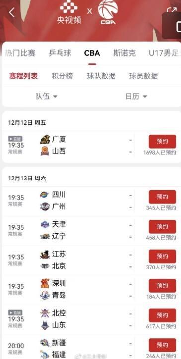 媒体人三土带刺不久前发文,他写道:“了解了一下,央视对于CBA的直播,暂定每天只播一场,央视频和电视上还是同一场。12月12日,当天只有一场揭幕战广厦vs山西,这个肯定转播,而13日,有6场,只能看到北控vs山东,目前暂定的计划就是每天挑一场最有看点的转播。如果是这样,那CBA的传播损失很大。”