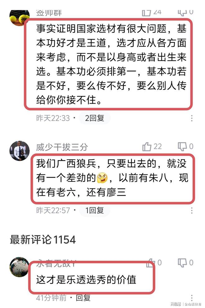 许多网友纷纷表示,庞峥麟应该进国家队。“立贴为据,老六早晚会进国家队”;“进国家队应该妥妥了吧”;“我知道你们不抱太大希望,但是我知道广西球迷会一直认为老6有国家队的实力。两年前说的话。”;“事实证明国家选材有很大问题,基本功好才是王道,选才应从各方面来考虑,而不是以身高或者出身来选。基本功必须排第一,基本功若是不好,要么传不好,要么别人传给你接不住。”;“我们广西狼兵,只要出去的,就没有一个差劲的,以前有朱八,现在有老六,还有廖三。”;“这才是乐透选秀的价值。”……