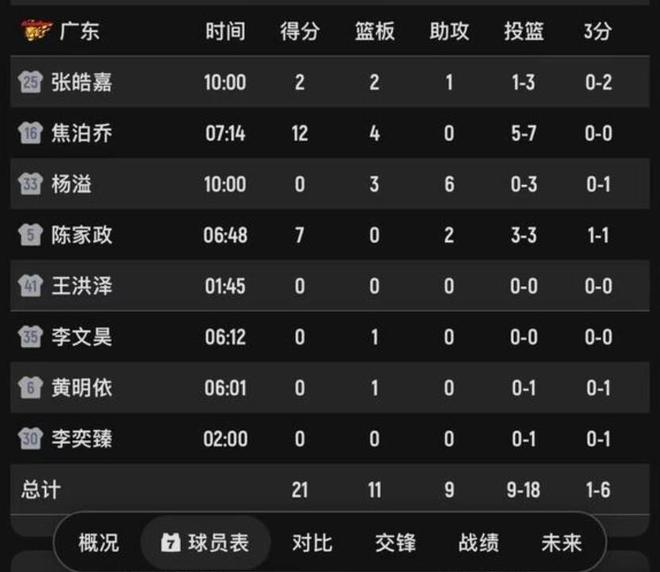 广东队新赛季阵容调整很大,外援不谈,国内球员的变动明显。球迷们应该记得上赛季,张皓嘉和张文逸一向是杜锋非常喜欢用的,而现在基本看不到了。除了张文逸有些出场时间,张皓嘉已经上不了场了。