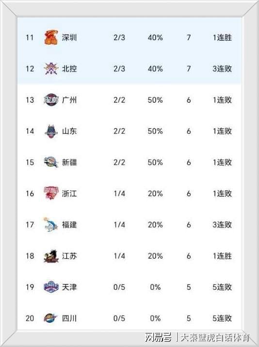 CBA战报:三大豪强全胜,1场冷门爆出,最新排名:2队全胜2队全败