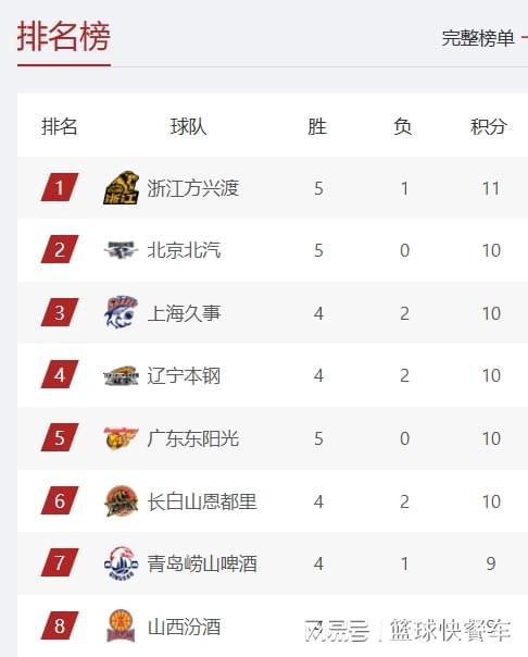先说说卫冕冠军广厦队,本赛季,广厦的实力还是非常强。尽管在上一次交锋,广厦曾大比分输给辽宁队。不过,两队第二番再战,广厦便再也没有给辽宁队任何机会,他们在第二节比赛便迅速拉开分差,双方最大分差一度拉开到37分。最终,广厦也以96-64大胜辽宁队32分。在这一场比赛过后,广厦的战绩变成5胜1负,成功杀回积分榜第一名。而北京队则紧随其后,以5胜0负的战绩,排在积分榜第2。排在积分榜第四名的是上海队。最近两场比赛,上海队逐渐找回状态。经过赛季初的低迷后,上海队渐入佳境,这一场比赛面对整体实力偏弱的江苏队,上海队没有给对手任何机会,最终以84-68大比分击败江苏队,成功收获两连胜。这一轮比赛过后,上海队的战绩变成4胜2负,成功杀回积分榜前四名,排在积分榜第三名。而这也是上海队新赛季开赛至今,他们的最好排名了。四冠王辽宁队,他们在这一轮比赛客场挑战广厦,球队最终以32分的分差惨败给对手,连胜纪录也被终结了。这一场比赛过后,辽宁队的战绩变成4胜2负,遭遇到赛季第2败。不过,由于多赛一场的缘故,辽宁队在排名上稍微占优,他们暂居积分榜第4名。而作为辽宁队的老对手,广东队虽然本赛季保持不败金身,已经豪取5连胜,可他们最终还是只能屈居人后,以5胜0负的战绩,排在积分榜第5名。积分榜第6名则属于吉林队,他们目前已经取得一波4连胜,以4胜2负的战绩,排在积分榜第6名,在没有超级球星坐镇的情况下,吉林队本赛季能够取得这样的战绩,已经实属不易了。积分榜第7名则属于青岛队,他们的战绩是4胜1负,而第8名则是山西队,他们的战绩也是4胜1负。这两队都是少赛一轮的缘故,在排名上稍微吃亏。而积分榜第9名则是深圳队,他们的战绩是3胜3负,排在第10名则属于北控队。第11名则是同曦队。至于季后赛守门员第12名,则是属于江苏队,他们目前的战绩是1胜5负,不过,凭借着多赛一轮的缘故,他们还是力压胜率更高的新疆队,排在积分榜第12名。第13名则属于新疆队,战绩是2胜3负。第14名则属于宁波队。而第15名则是山东队,战绩为2胜2负。第16名则是浙江队,战绩是1胜4负。第17名则属于广州队,战绩为2胜2负。第18-20名,则分别是四川、福建以及天津。这其中四川和天津两队,战绩还没有赢球。附:CBA积分榜最新排名1-5:广厦、北京、上海、辽宁、广东6-10:吉林、青岛、山西、深圳、北控11-15:同曦、江苏、新疆、宁波、山东16-20:浙江、广州、四川、福建、天津