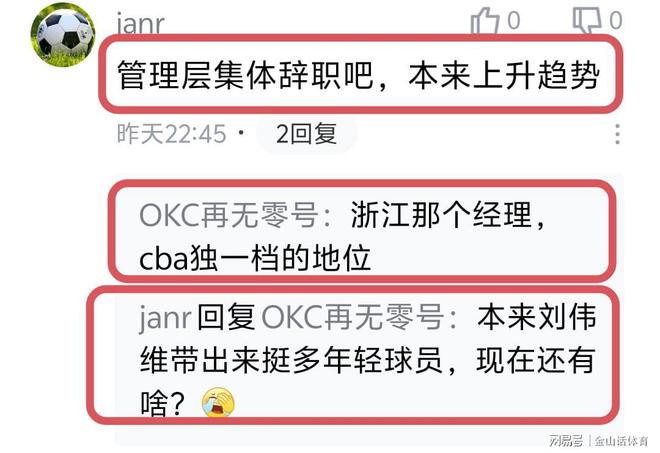 值得一提的是,部分浙江球迷在评论区,把球队目前现状归罪于球队总经理方俊。“管理层集体辞职吧,本来上升趋势”;“浙江那个总经理,cba独一档的地位。”;“本来刘伟维带出来挺多年轻球员,现在还有啥?”;“方俊下课”;“该下课的不是丁伟,是另外一个人,方俊!”……