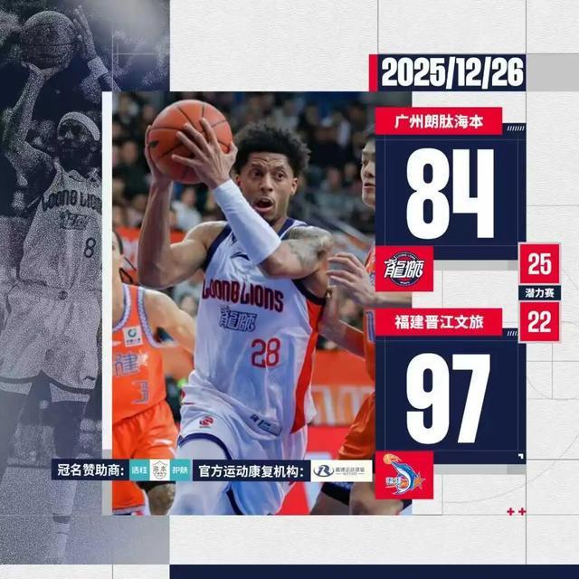 2025-26赛季CBA常规赛第六轮客场负于福建广州朗肽海本84:97福建晋江文旅
