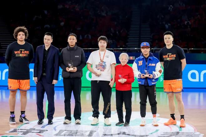 庆典仪式上,CBA联盟向上海久事男篮赠送纪念礼物,这份礼物不仅是对过去三十周年的激情回望,更是对未来携手向前的美好期许和憧憬。随后,上海久事男篮主帅卢伟和球员李弘权、洛夫顿为球队的“最佳第六人”——用镜头定格历史的媒体工作者资深摄影记者洪南丽老师、保障日常点滴运转的工作人员代表刘惟,以及看台上不离不弃的球迷代表袁嘉亮和胡毅豪,颁发三十周年纪念章。