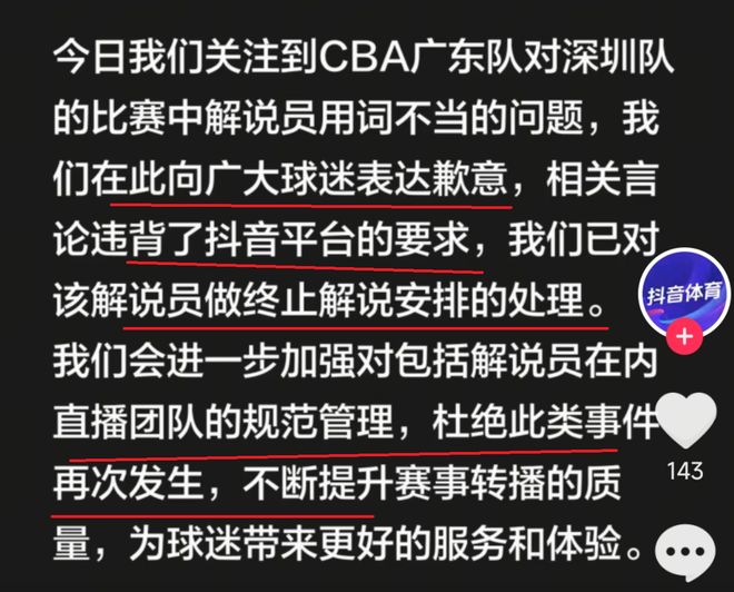 大快人心!真的是大快人心!CBA解说员内涵广东队球员,内涵广东队球迷,抖音体育深夜作出处理,终止其解说资格……