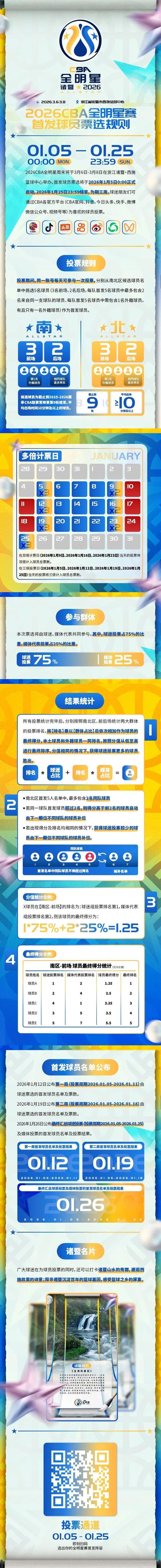 2026年CBA全明星赛首发阵容投票火热进行中!这是属于所有球迷的舞台,为咱们的兄弟投上宝贵一票!无论是前场强攻还是后场组织,把你最支持的球员选进首发阵容!