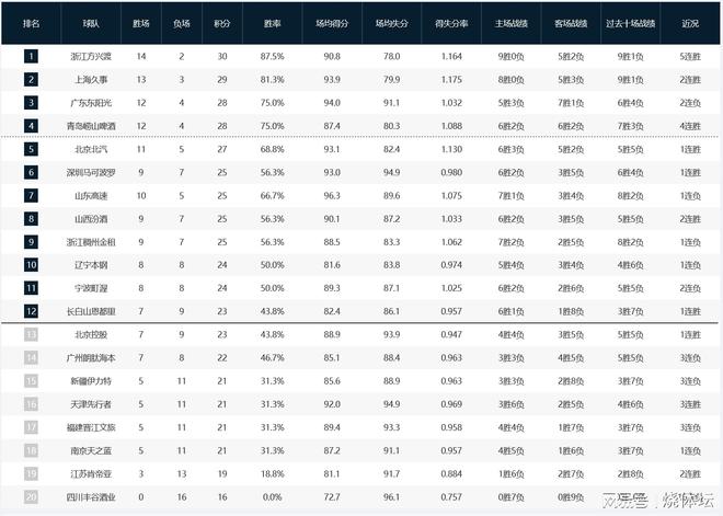 CBA排名榜