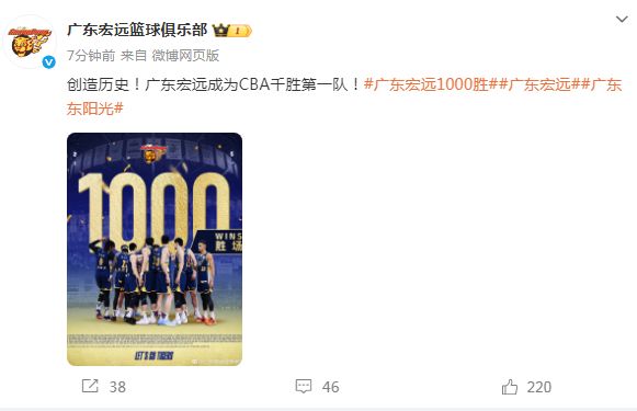 北京时间1月19日,伴随广东男篮轻松104-76大胜四川男篮,他们成功夺得队史第1000胜里程碑,成为CBA历史首支达成如此成就的球队。广东男篮官方晒出海报庆祝,他们本赛季剑指冲击第12冠。