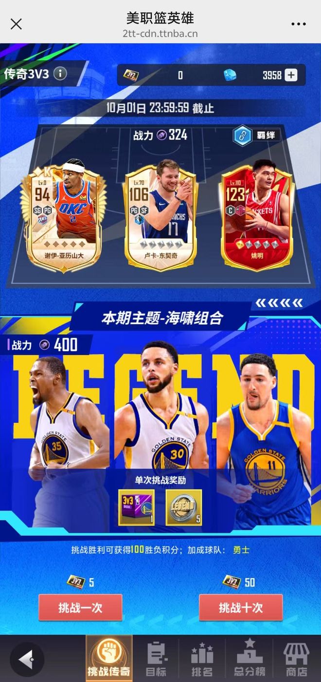 家人们,准备好用什么姿势观赛了吗!?谁能一战?NBA英雄2传奇3v3来了!选出你的组合来挑战海啸组合!柚子拿出大姚+东契奇+鸭梨!你觉得对上勇士三巨头,有胜算吗?快来选取阵容,看看你的巨头组合!