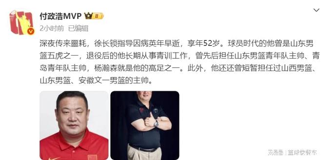 作为中国男篮名宿,熟悉CBA和中国男篮的球迷,应该都知道他的名字。早年,他是山东男篮的奠基人之一,与巩晓彬、鞠维松等人一度齐名。在1997-98赛季,徐长锁带领山东队拿到CBA常规赛亚军,而在季后赛阶段,山东队最终也拿到了第三名的好成绩。这一战绩,直到2012-13赛季,山东队在丁彦雨航(徐长锁得意门生)带领下,杀进CBA总决赛,这才被打破。而在1999年,他还曾短暂入选过国家队。不过,对于徐长锁而言,他的人生最为高光时刻,或许还不在于职业生涯,而是在他的退役之后生涯。在从CBA退役以后,徐长锁没有离开篮球,而是选择在篮球基层深耕。他不仅执教过山西队,山东队等CBA球队,而且,大部分时间还是在青年队执教,狠抓青少年基本功,像杨瀚森、丁彦雨航、陶汉林、贾诚等国手,都是他一手栽培起来的。可以说,他对于中国男篮的贡献,其实是非常大的。尤其是杨瀚森,徐长锁算是杨瀚森的启蒙恩师,和职业生涯的引路人,甚至可以毫不夸张的说,是他改变了杨瀚森的人生走势。在杨瀚森14岁那一年,徐长锁只看了杨瀚森一场比赛,便一眼相中他,并且在随后一年里,徐长锁与杨瀚森的父母软磨硬泡,这才让杨瀚森加盟青岛,也为他日后的飞黄腾达奠定了坚实的基础。而在几个月前,杨瀚森在NBA选秀大会上被开拓者选中,作为昔日的恩师,徐长锁终于长叹一口气,坦言兑现了当年的诺言。不过,颇为遗憾的是,就在中秋这个月圆之夜,徐长锁却永远的离开了。根据多名知名媒体人透露,徐长锁已经确定永远离开了。作为杨瀚森职业生涯的引路人。在杨瀚森加盟NBA以后,徐长锁无疑是最为开心的一个,他一手打造了男篮未来接班人。可遗憾的是,在杨瀚森登陆NBA以后,徐长锁却未能亲眼看到他征战NBA,甚至连他的NBA首秀,都看不到了。事实上,除了杨瀚森之外,丁彦雨航、陶汉林、贾诚这些国手,也是徐长锁一手带出来的。作为青年队教练,他在基层一直默默奉献着,为山东男篮和中国男篮培养一代又一代 的人才。只可惜,在杨瀚森这些青年才俊逐渐打出成绩的时候,他却英年早逝。他的离开,对于中国男篮而言,确实是一大损失,一个沉重的打击。也给热爱篮球的人提了一个醒,喜欢篮球可以,但也要倍加珍爱自己的身体。