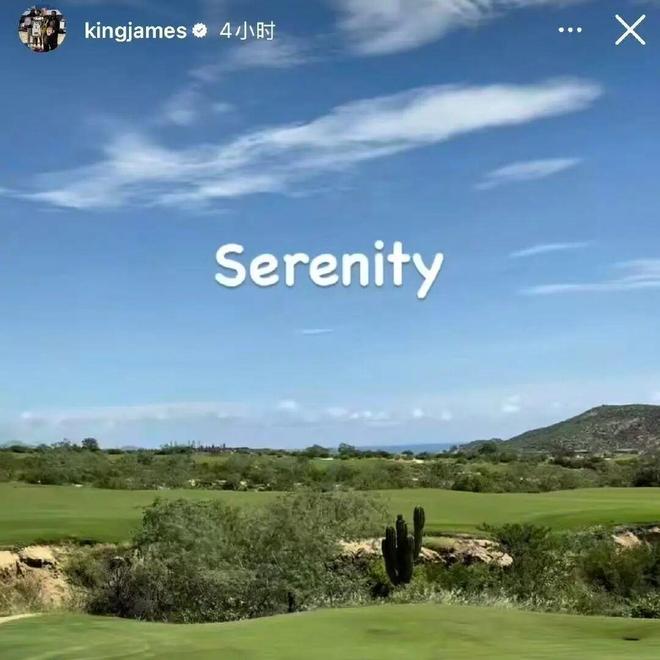 詹姆斯几个小时前发了一条高尔夫动态还配了一个“宁静”,表达对风景的赞许