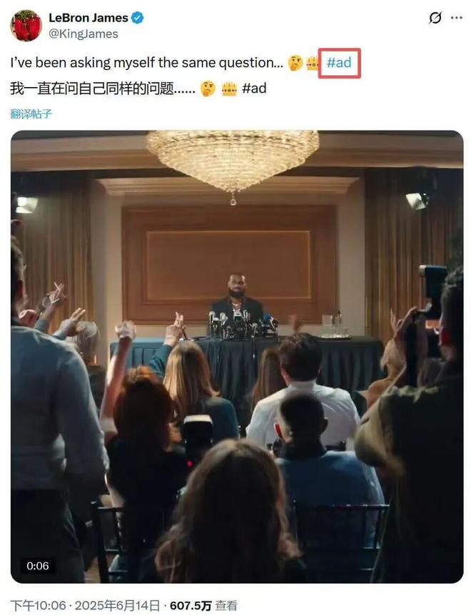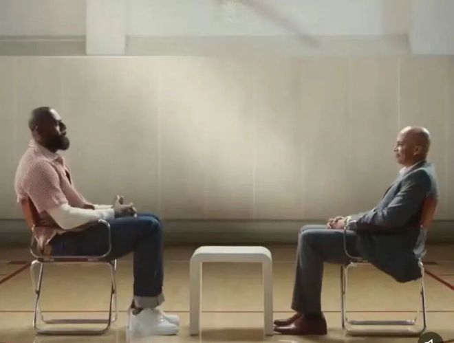 《营销说》论调的依据是,六月份的时候詹姆斯就配合亚马逊拍过一条采访式广告广告中,也以他被问到退役时刻作为噱头视频里老詹的回应戛然而止,等待着续集