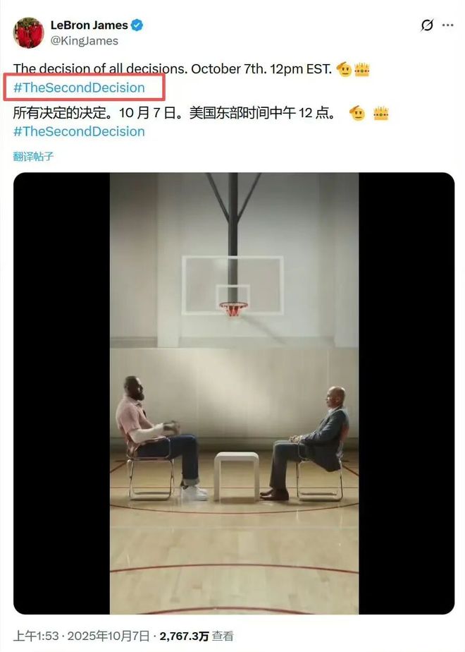 这跟2010年通过电视直播宣布加盟迈阿密热火时不一样吗?詹姆斯这则预告一出,整个NBA都哗然了乐福现身评论区,询问老詹:“决定2?”莫兰特直呼:“不!!他们说你在骗人!“队友范德彪也评论:“不是,啥意思哥?”