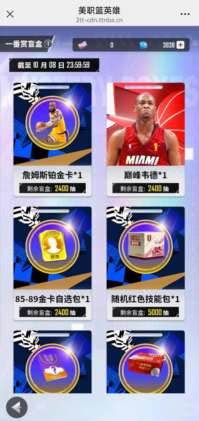 致敬传奇!NBA英雄2盲盒一番赏特别版!六大奖池任选其一!老詹还是韦德!最高可直接拿下5张铂金詹姆斯!这活动最适合一波战力冲刺,快来参加!