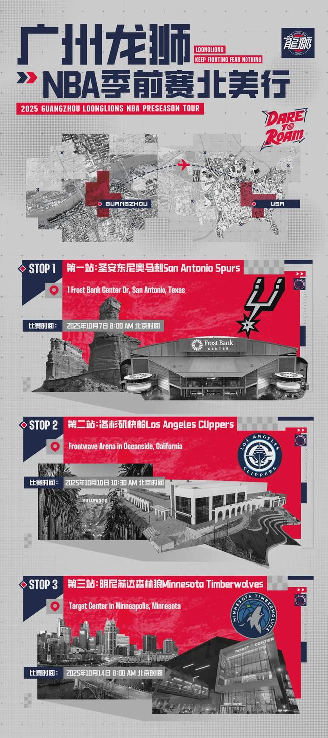 放走仅仅培养一年的潜力新星于米提,交易得到心心念念的陈国豪,获得身体素质劲爆的张文杰,最后收下静态天赋炸裂的徐昕,广州龙狮男篮一下子完成重建。新赛季里,广州龙狮男篮的阵容真称得上兼具潜力和即战力,再选择合适的外援,确实有重返季后赛的希望。为了让队内的年轻球员尽可能拔高上限,广州龙狮男篮还时隔多年再度踏上了美国之旅,重启NBA季前赛的征程,要在美国跟马刺、快船以及森林狼进行3场公开的季前赛。