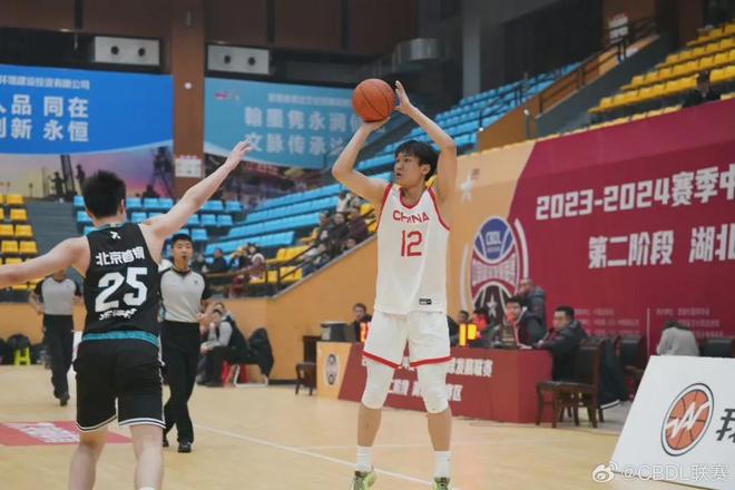 即便面对职业球员,管子煜也能做到不落下风。代表中国男篮二队出战的2023-24赛季的CBDL(CBA发展联盟)比赛时,管子煜曾单场狂轰33分,场均砍下23.7分8.4篮板的顶级锋线数据。