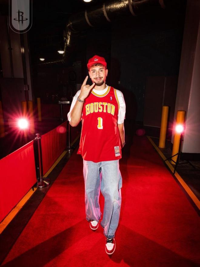 雷速体育10月7日讯 今日NBA季前赛火箭对阵老鹰的比赛正在进行中。赛前,火箭中锋申京身穿麦迪的火箭1号球衣进入赛场。