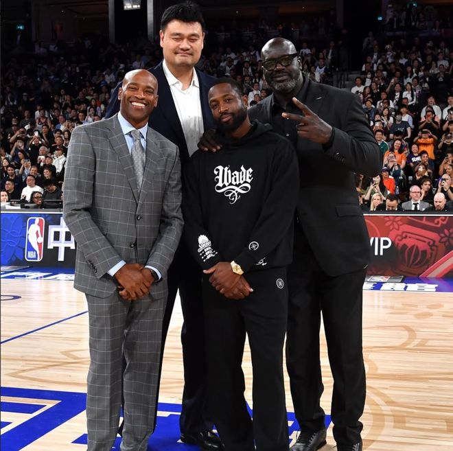 每次NBA中国赛,都会邀请不少NBA传奇球星现场参与,这次,姚明和奥尼尔、韦德、卡特等名宿也一起来到澳门,出席6年来的第一届NBA中国赛。