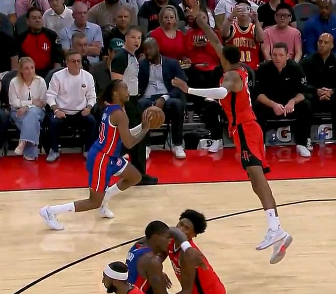 谢泼德两个近在咫尺的上篮不进,申京也在篮下出手不进,谢泼德横传球失误被活塞反击暴扣,火箭这个阵容各种输分。裁判叫回放火箭有6个人在场吃了一个技术犯规,小贾三分不中,伊森又一个走步失误,杜伦推搡阿门吃T,随后杜伦给了阿门一肘击中头部被吹二级恶意犯规直接驱逐,活塞在杜伦下场后进攻还给流畅,半场打完火箭56-63落后活塞。