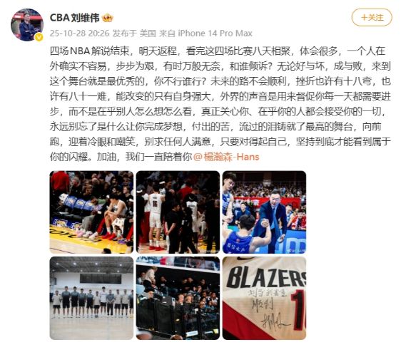 如今刘维伟通过社媒写道:“四场NBA解说结束,明天返程,看完这四场比赛,八天相聚,体会很多。一个人在外确实不容易,步步为艰,有时万般无奈,和谁倾诉?无论好与坏,成与败,来到这个舞台就是最优秀的,你不行谁行?”