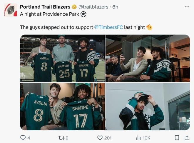 细节二:杨瀚森被下放是加练开拓者周日没有比赛,球队内部也没有安排训练,而是在场外参加了部分活动。从开拓者官方发布的内容也能看出这一点,主帅斯普利特和主将夏普、阿夫迪亚一同去观看了足球比赛。因此杨瀚森被下放G联盟一天后就被召回并不是惩罚,反而是开拓者队重视杨瀚森的表现,球队希望利用在主队与G联盟来回奔波的方式来为缺少登场时间的杨瀚森创造更多训练与比赛机会。