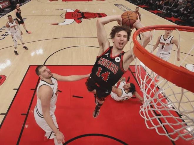 他也能提供不错的篮板保护,本赛季多诺万教练非常强调防守篮板,目前公牛队以场均36.1个防守篮板排名全联盟第3,布泽利斯在57次篮板机会中抢下32个,机会篮板争抢率56.1%算是合格水平。