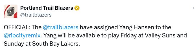 此前,开拓者队记Richman曾预计瀚森可能会在12月2日至11日期间被下放——这段时间混音队将在主场连续出战5场,无需长途旅行,球队管理层和教练组能近距离观察他的表现,他也能在短时间内积累大量比赛经验。如今看来,球队决定提前让瀚森去感受发展联盟的比赛,尽快有比赛可打。主帅斯普利特此前在采访中也透露,瀚森近期一直在加练,他对瀚森的职业态度表示满意。