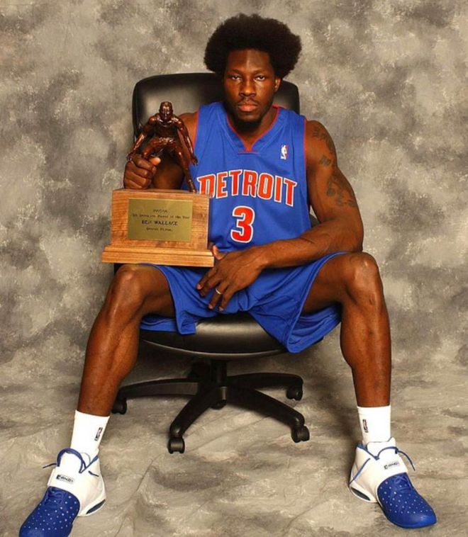 第三位:本・华莱士——落选新秀成传奇,29岁封王夺冠没有选秀顺位、没有自主进攻能力,身高2.06米的本・华莱士初入联盟时,只是个无人问津的矮个内线。生涯前四年,他场均仅4分6.3篮板,在奇才和魔术始终是边缘人物。2000年,26岁的他加盟活塞,终于找到属于自己的舞台。29岁那年,他迎来爆发:2003-04赛季,他以场均11.9篮板3盖帽的表现荣膺最佳防守球员,率活塞在总决赛击败湖人夺冠。此后他连续4年入选全明星,5年4次拿下最佳防守球员,成为NBA史上最伟大的防守型中锋之一。从落选新秀到总冠军核心,他用肌肉与汗水在30岁前后书写了逆袭神话。