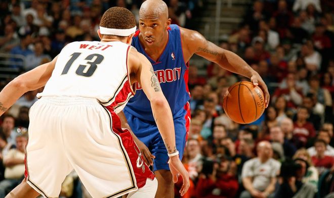 第二位:昌西・比卢普斯——“水货探花”逆袭,28岁拿草根FMVP1997年以探花身份进入联盟的比卢普斯,前五年堪称“流浪的失败者”:5支球队、伤病缠身,“水货探花”的标签如影随形。2002年,28岁的他以6年3500万的“廉价合同”加盟活塞,谁也没料到这会是传奇的起点。他迅速成为活塞“坏孩子军团2.0”的灵魂,2003年带队打出东部第一战绩,2004年更是在总决赛中率队掀翻OK组合,以场均21分5.2助攻的表现斩获FMVP——此时的他尚未入选过全明星,堪称NBA史上最草根的总决赛MVP。此后他连续6年率活塞杀入东决,33岁时转投掘金仍能带队闯入西决,用实力撕掉了所有质疑标签。