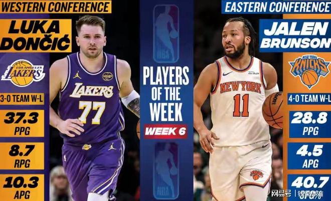 一、周最佳球员揭晓:布伦森率队不败当选 东契奇高效斩殊荣NBA官方公布第6周东西部周最佳球员,东部荣誉归属尼克斯后卫布伦森,他上周场均贡献28.8分+4.5助攻,带领球队豪取4胜0负的全胜战绩,这也是其生涯第8次斩获周最佳;西部则由湖人后卫东契奇当选,他上周状态暴走,场均轰下37.3分+8.7篮板+10.3助攻的豪华数据,助力湖人取得3胜0负,职业生涯第15次获此荣誉。此外,贝恩、布朗、希罗、西亚卡姆、里夫斯等多位球星入围本期周最佳提名名单。