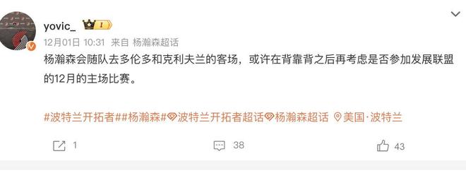 所以在这场比赛结束之后,其实对于很多中国球迷来说,大家都希望他能够到发展联盟去练一下级。因为到了发展联盟,他就是球队的核心,起码能够打够30分钟以上。各方面的天赋都能够有所展现,球迷也可以看得过瘾,杨瀚森也可以更好的磨练自己的技能。包括前段时间开拓者的记者也透露,在结束了主场对阵雷霆的比赛之后,杨瀚森按计划应该会下放到发展联盟打5场主场的比赛。没有想到最终主教练却出尔反尔,在结束了雷霆队的比赛之后,球队的记者透露杨瀚森接下来将会继续跟随球队征战客场的比赛,后续再根据球队的情况来确定杨瀚森要不要继续去到发展联盟打比赛。