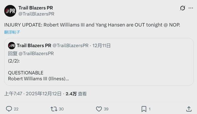这次受伤,比想象中要严重。12月10日发展联盟本来有训练和比赛,杨瀚森身体不适并未参加。杨瀚森本赛季在发展联盟场均出战31.6分钟,能够得到16.3分10.3篮板4.7助攻2盖帽3.3失误,三项命中率:45.2%,30.8%,71.4%。