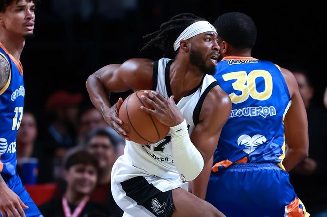 本场比赛中,奥斯汀马刺的先发侧翼球员斯坦利-乌穆德(Stanley Umude)的表现还是比较稳定的。乌穆德全场出场37分11秒,投篮18中9,三分线外11中4,罚球2中2,得到了26分9篮板1助攻4抢断1盖帽的数据,还有2次失误和2次犯规,正负值更是达到了全场最高的+27。乌穆德在进攻端也是保持了很高的水准,他有着稳定的进攻效率,有着不错的篮下得分能力,也具备可靠的外线投篮把握,是一名能力全面的得分手。乌穆德在防守端的表现更是可圈可点,他展现出了一名防守大闸应有的素养,他在防守端的贡献度也是非常惊人的。总体来看,乌穆德在攻防两端都起到了决定性的作用,他的一系列出色表现也是球队能够比较顺利地战胜对手的重要因素。