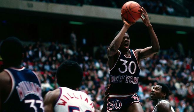 伯纳德·金创造纪录:60分比赛时间:1984年1977年的选秀大会,金在首轮第七顺位被网队选中。新秀赛季,他的场均得分便跻身联盟前十,展现出超强的个人实力。但很快金便染上了一个坏毛病——酗酒。这使得他场内场外都混乱不堪,但好在他及时的浪子回头,在加盟尼克斯之后他迎来生涯的巅峰时期。