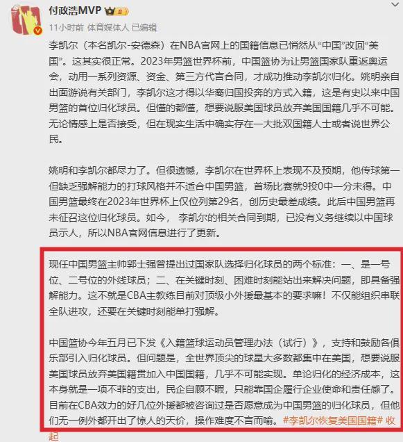 不是李凯尔不好,而是中国男篮一直以来缺少优秀控场球员的毛病,注定了更加适合归化能够大包大揽的持球核心类型球员。