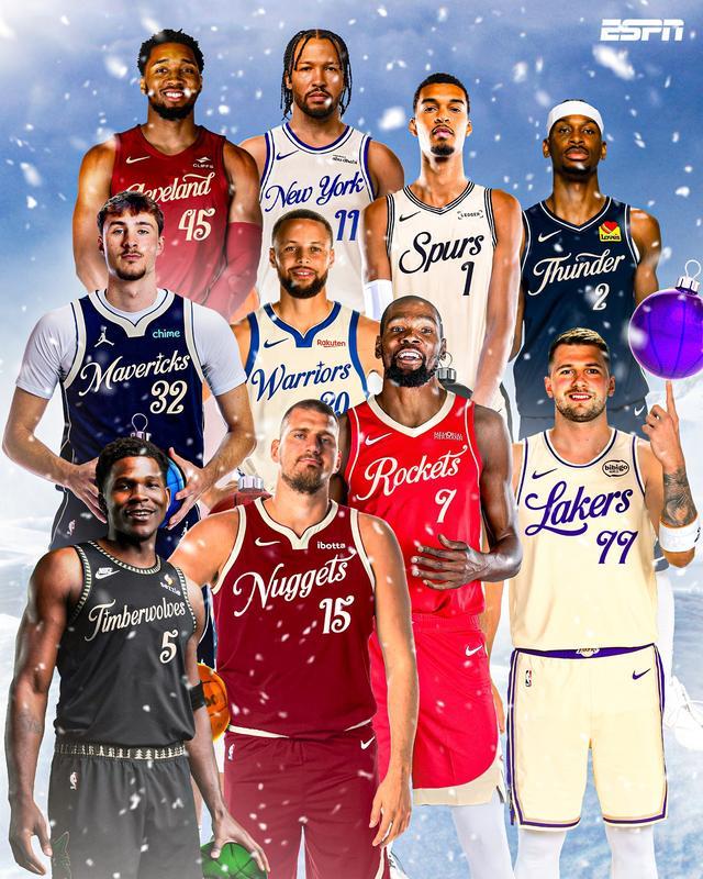 北京时间12月25日,ESPN发布了今年NBA圣诞大战球衣的照片。