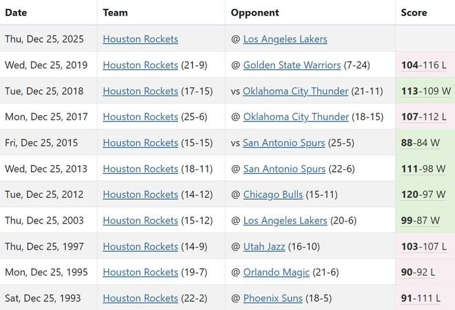 据统计,这是火箭队时隔6年后首次参加圣诞大战,并且是时隔7年后首度在圣诞大战中取胜,上一次火箭队在圣诞大战中取胜还是在北京时间2018年12月26日,当时火箭队以113-109主场击败了雷霆队。有趣的是,现在在队中的中锋卡佩拉也参加了那一场比赛,他也是队中唯一一位参加了那场比赛的球员。