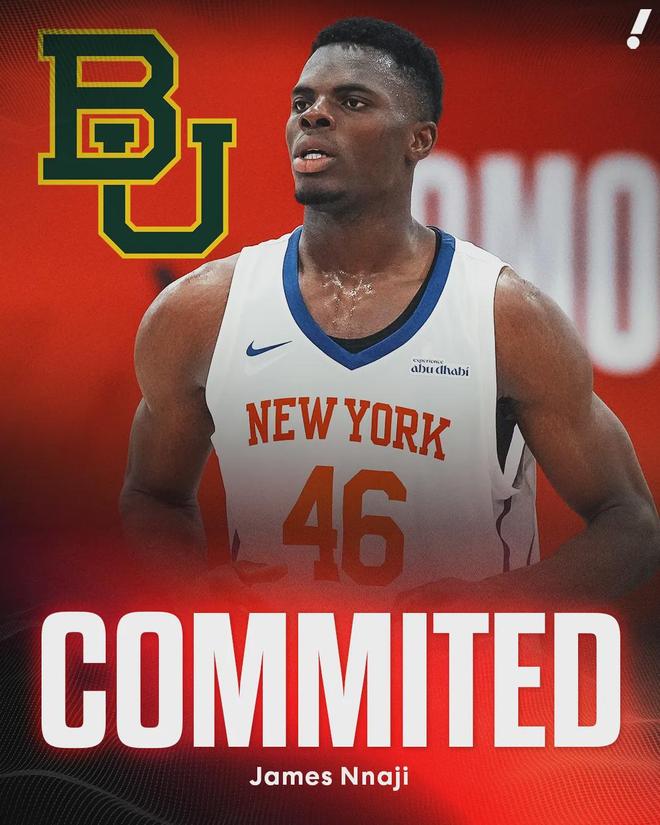 今天更是倒反天罡,一个名为詹姆斯·纳吉的球员加盟贝勒大学,已经完成注册。这个纳吉来自尼日利亚,2020年去了欧洲打球,效力于巴塞罗那男篮。